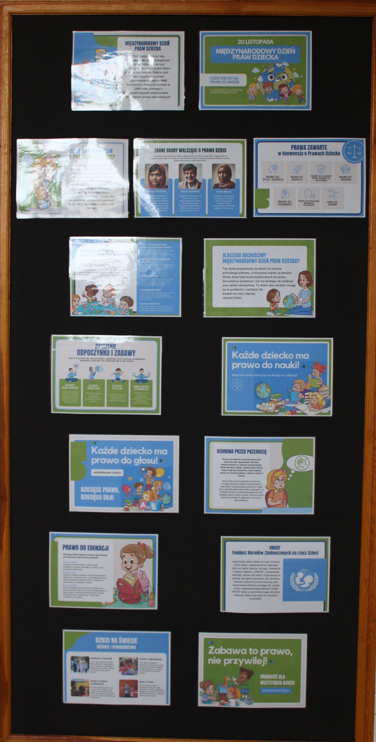 Międzynarodowy Dzień Praw Dziecka w naszej szkole obchodzono w radosnej, a jednocześnie refleksyjnej atmosferze. Z tej okazji przygotowano okolicznościową gazetkę ścienną, która prezentowała najważniejsze prawa dziecka i zwracała uwagę na potrzebę ich przestrzegania. Tego dnia zarówno uczniowie, jak i nauczyciele ubrani byli na niebiesko, co stanowiło symbol solidarności ze wszystkimi dziećmi na świecie. Podczas lekcji omówiono podstawowe prawa najmłodszych, zachęcając uczniów do rozmowy, zadawania pytań i dzielenia się własnymi doświadczeniami. Dzięki temu święto stało się okazją do budowania świadomości i wrażliwości na prawa każdego dziecka.
