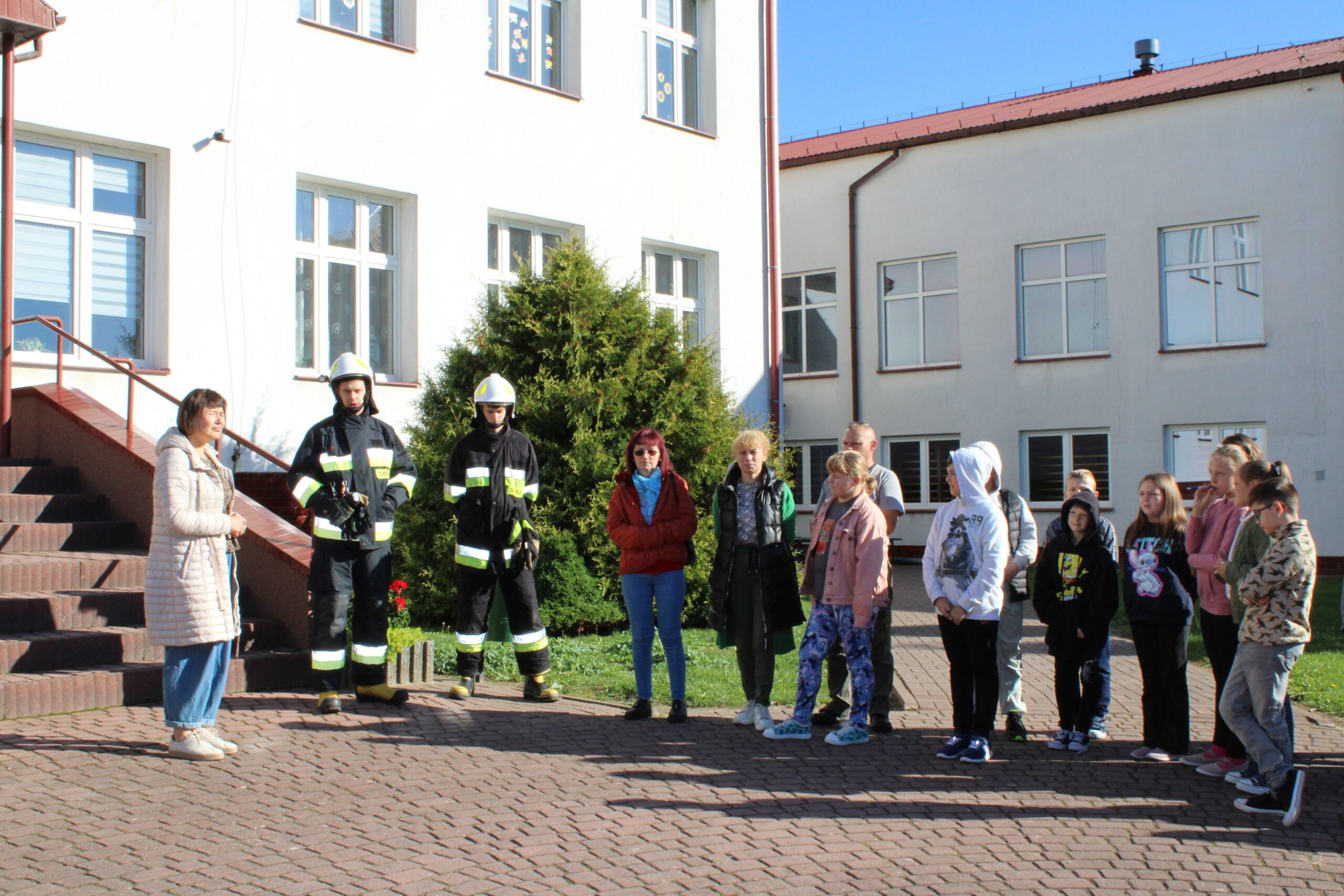 W działaniach ewakuacyjnych aktywnie uczestniczyli druhowie z Ochotniczej Straży Pożarnej w Gorajcu-Starej Wsi, którzy nie tylko czuwali nad przebiegiem ćwiczeń, ale również zaprezentowali uczniom sprzęt strażacki oraz przypomnieli podstawowe zasady postępowania w sytuacjach zagrożenia.