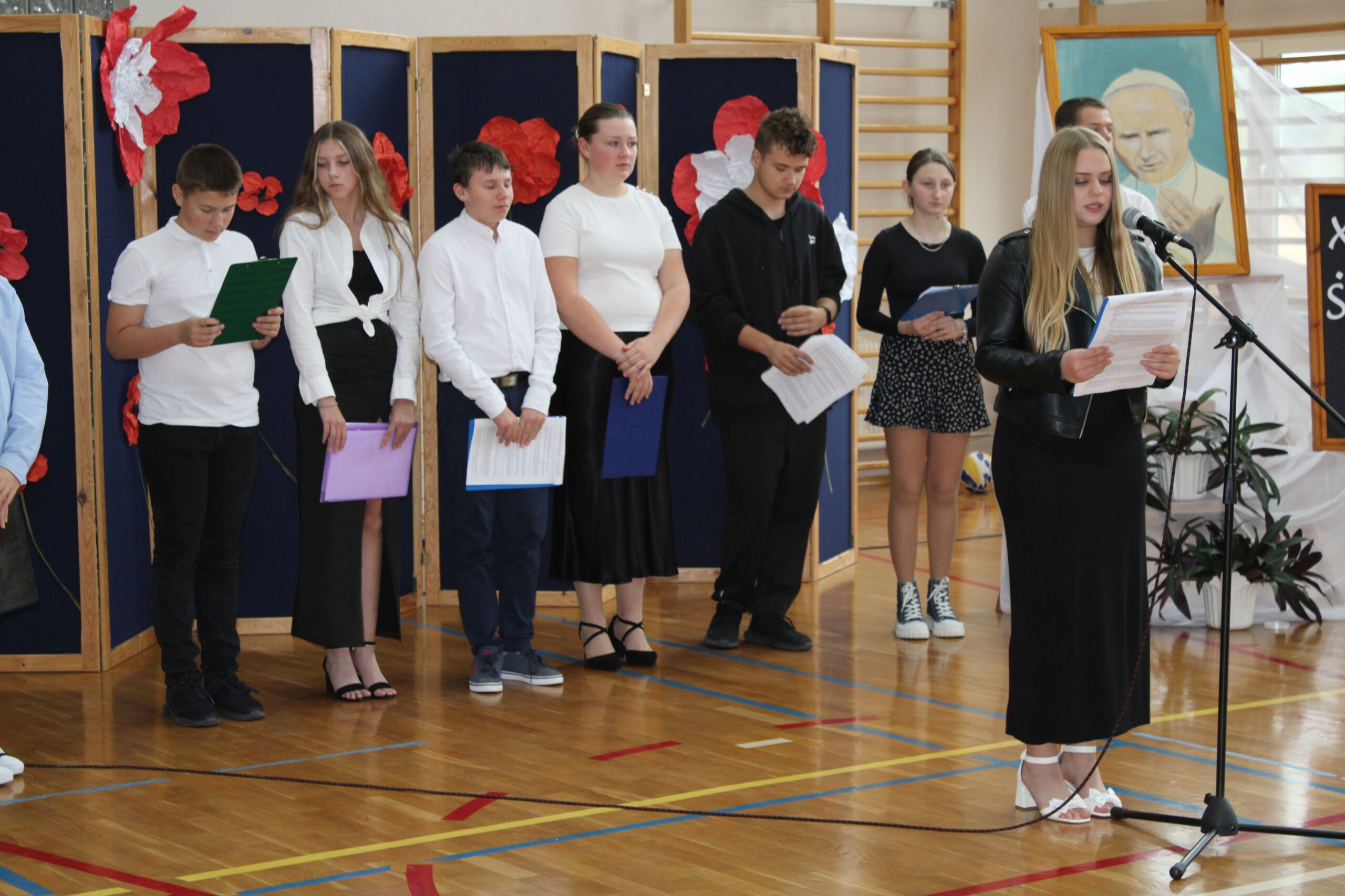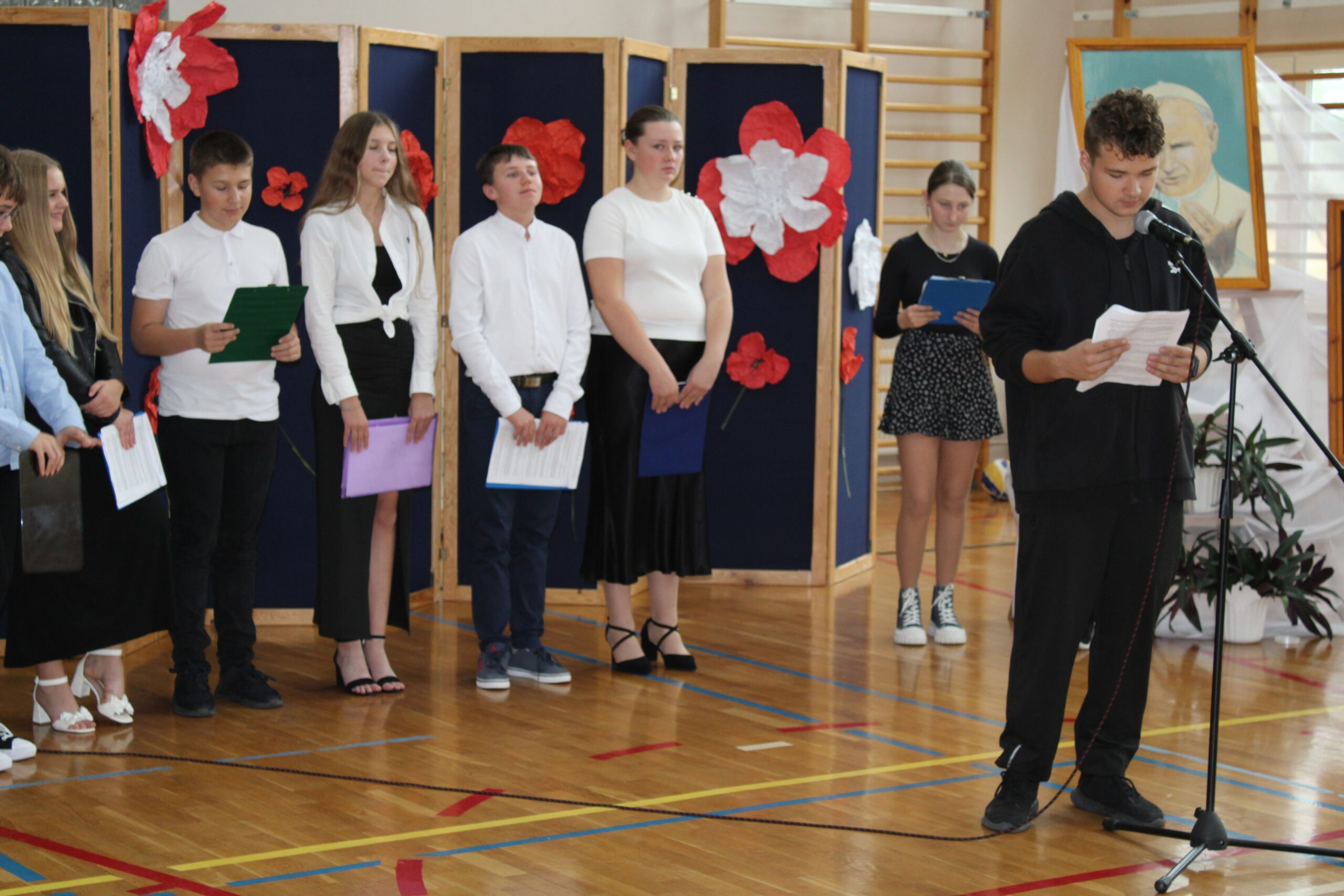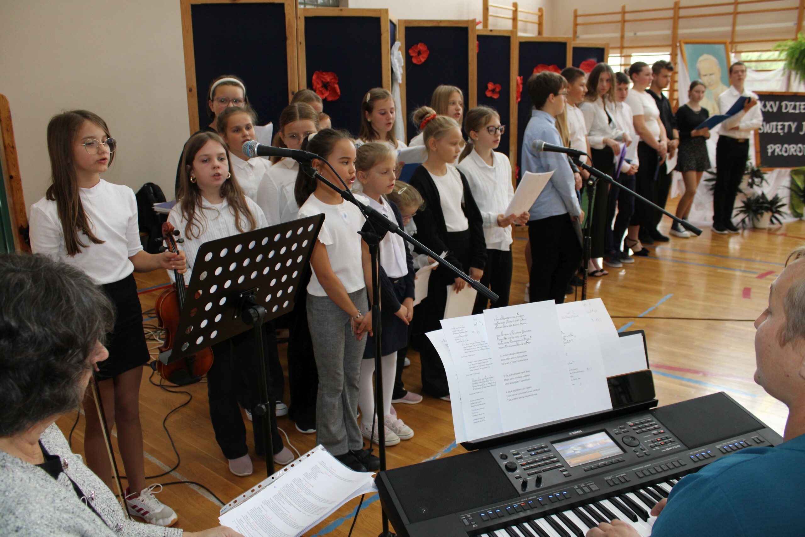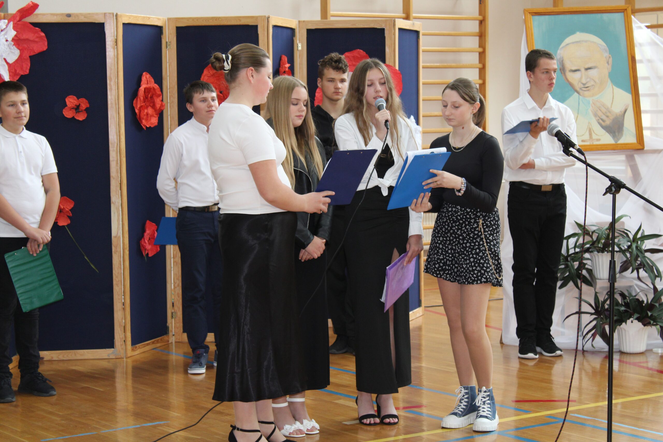 Uczniowie, nauczyciele i pracownicy szkoły wspólnie uczcili pamięć Papieża Polaka, uczestnicząc w programie artystycznym, który przypomniał najważniejsze przesłania św. Jana Pawła II. Uczniowie zaprezentowali montaż słowno-muzyczny poświęcony postaci i nauczaniu Papieża. Oprawą muzyczną zajęła się pani Bożena Wojtaszek, przygotowując uczniów do pięknych i poruszających wykonań.