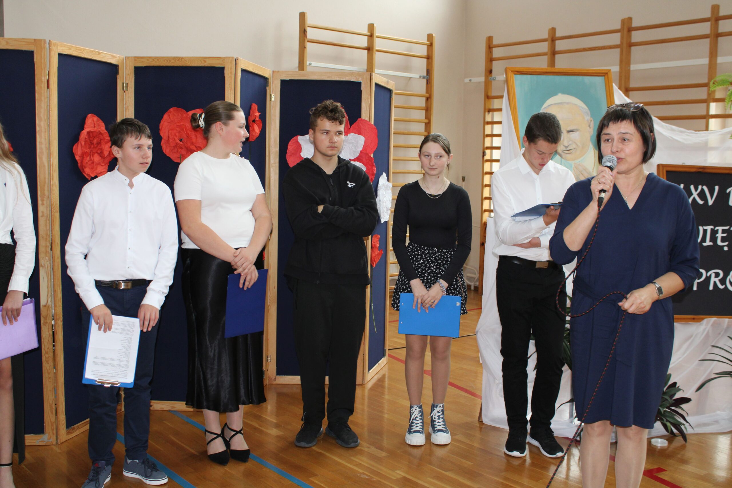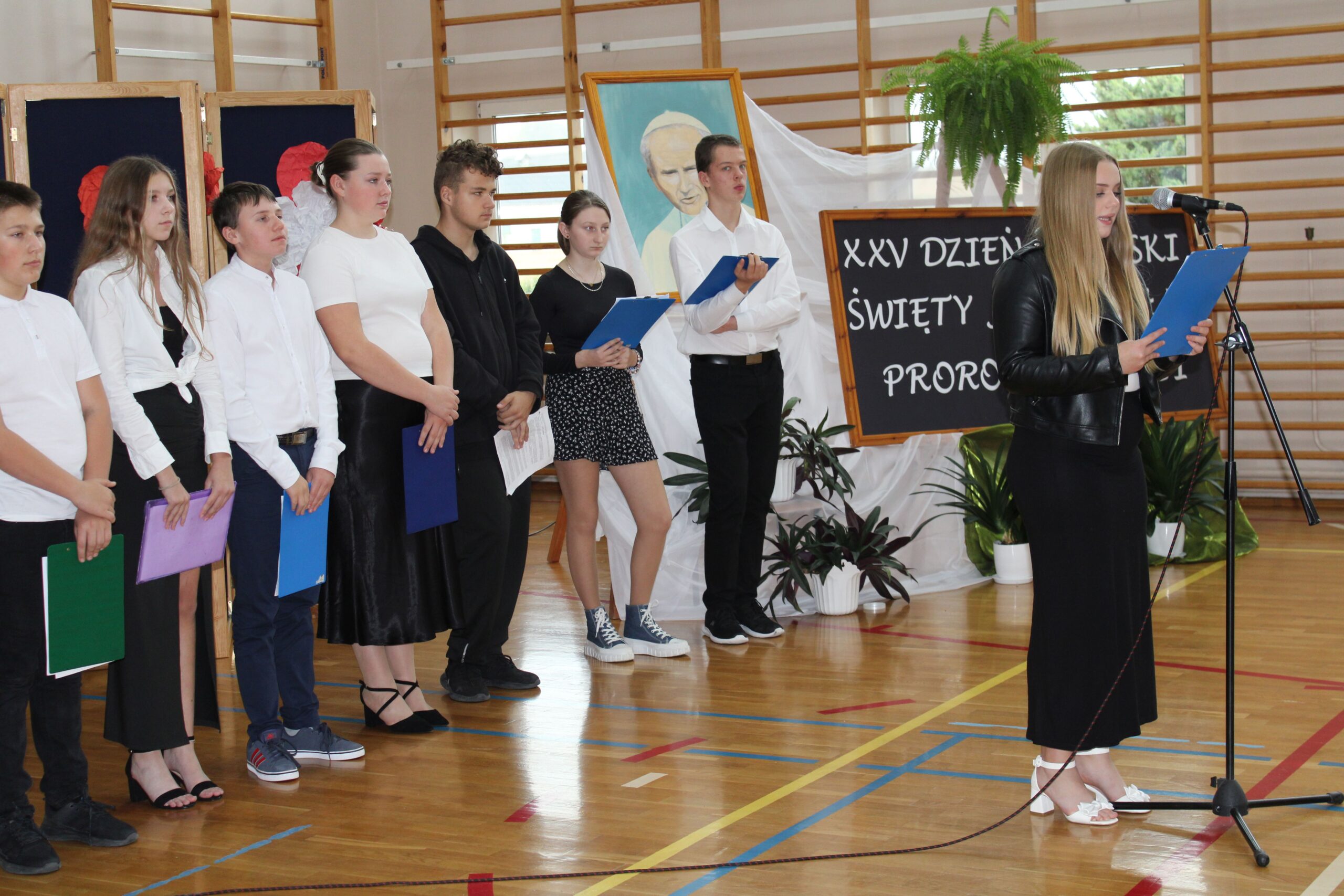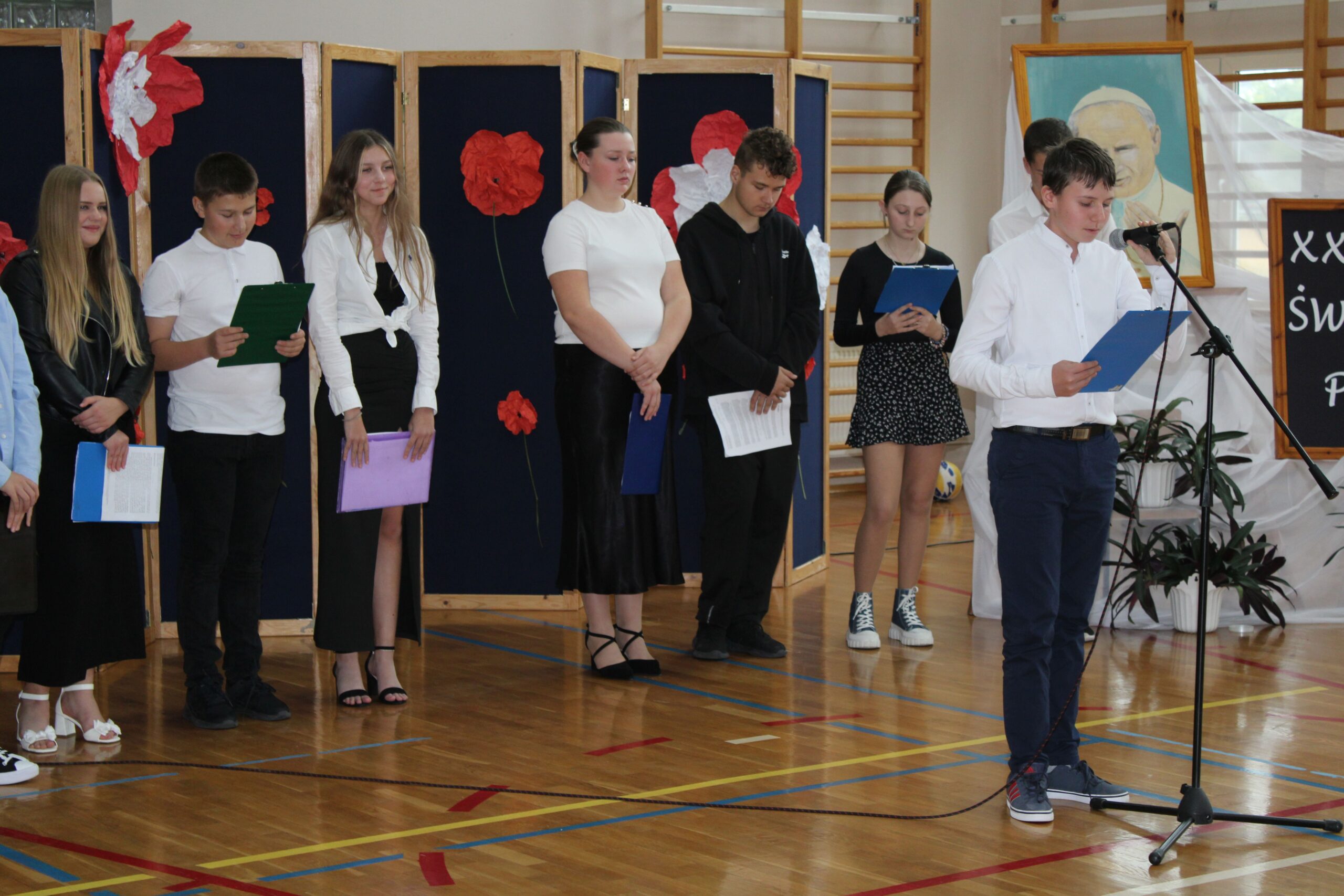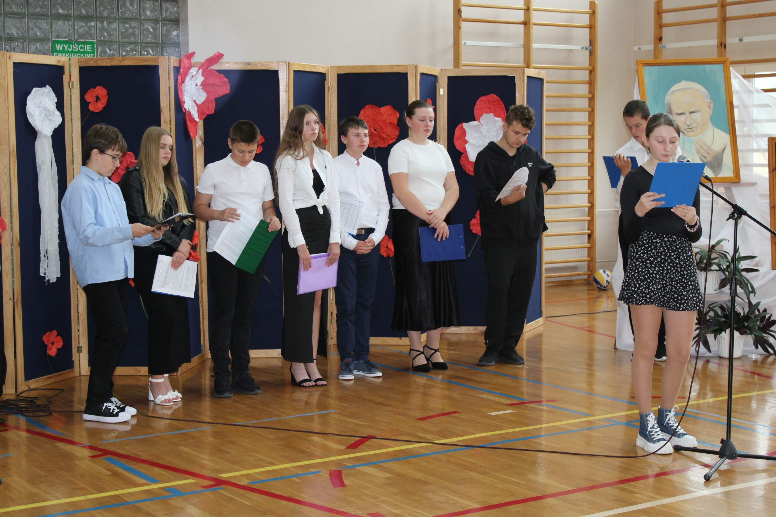 Uczniowie, nauczyciele i pracownicy szkoły wspólnie uczcili pamięć Papieża Polaka, uczestnicząc w programie artystycznym, który przypomniał najważniejsze przesłania św. Jana Pawła II. Uczniowie zaprezentowali montaż słowno-muzyczny poświęcony postaci i nauczaniu Papieża. Oprawą muzyczną zajęła się pani Bożena Wojtaszek, przygotowując uczniów do pięknych i poruszających wykonań.