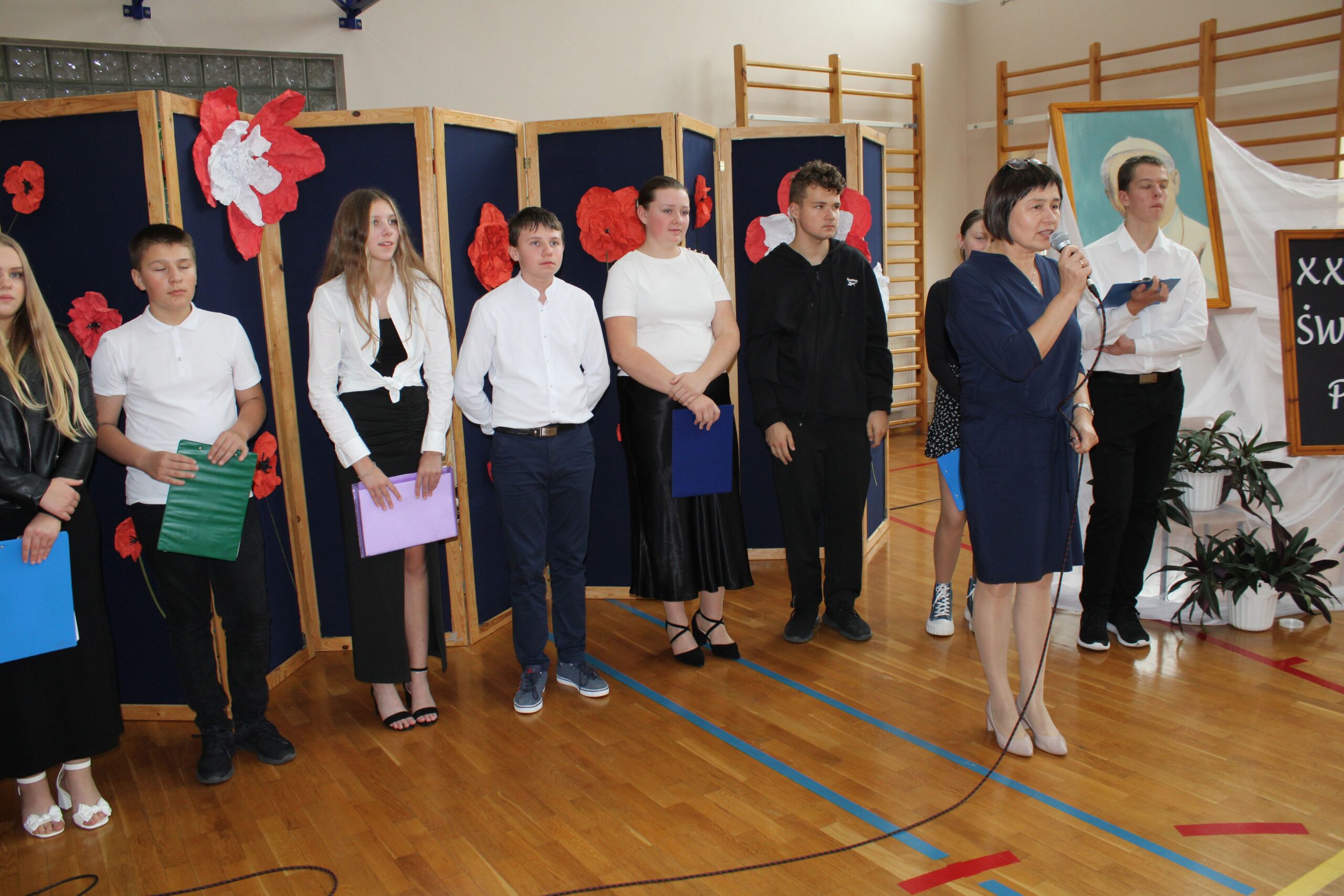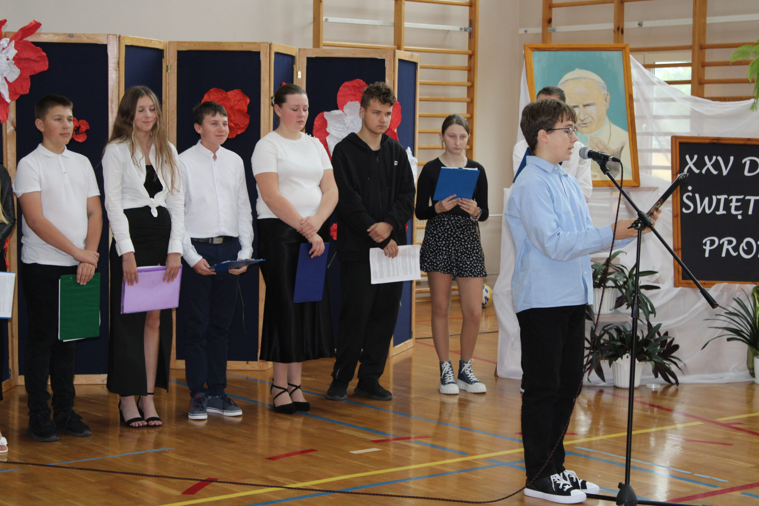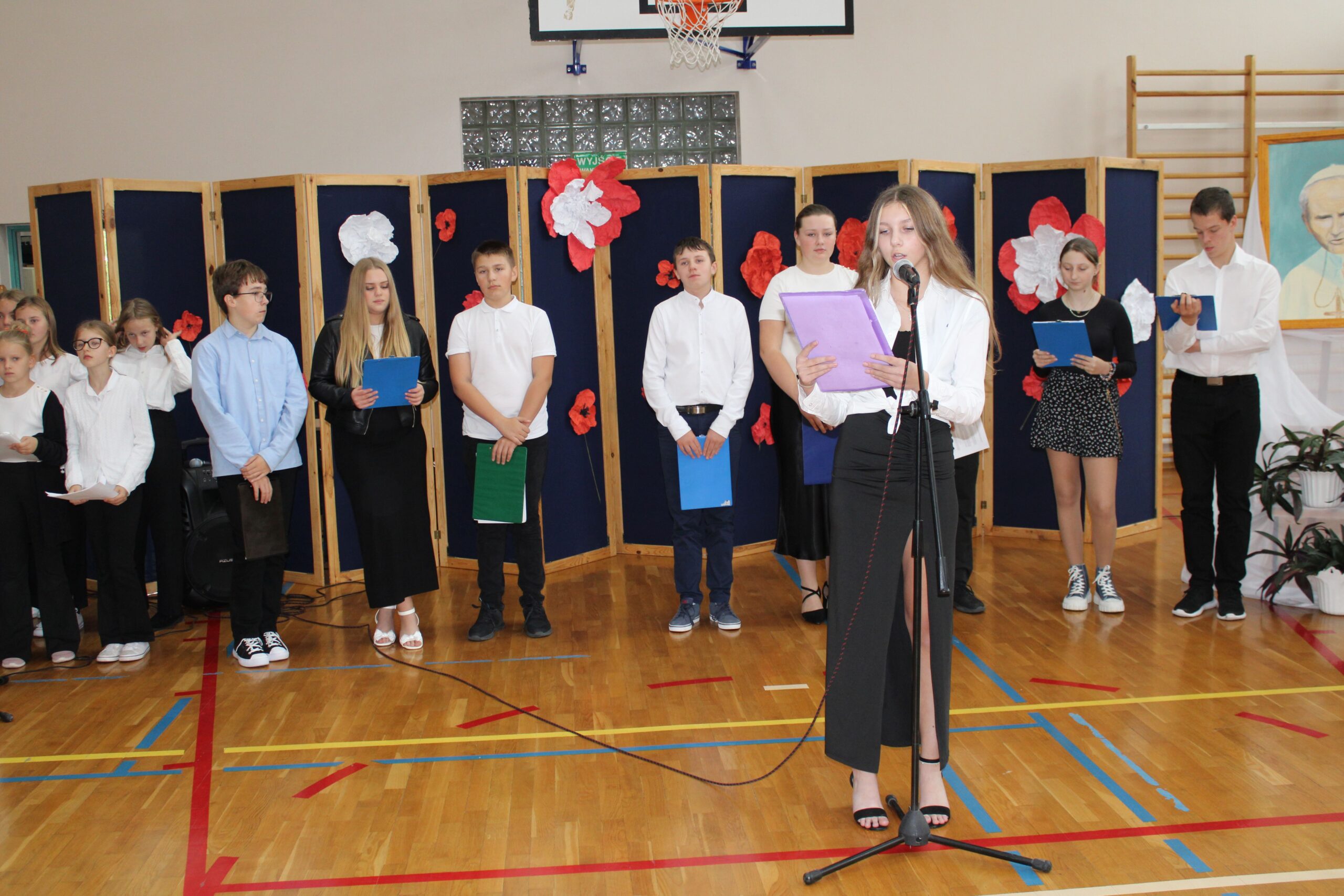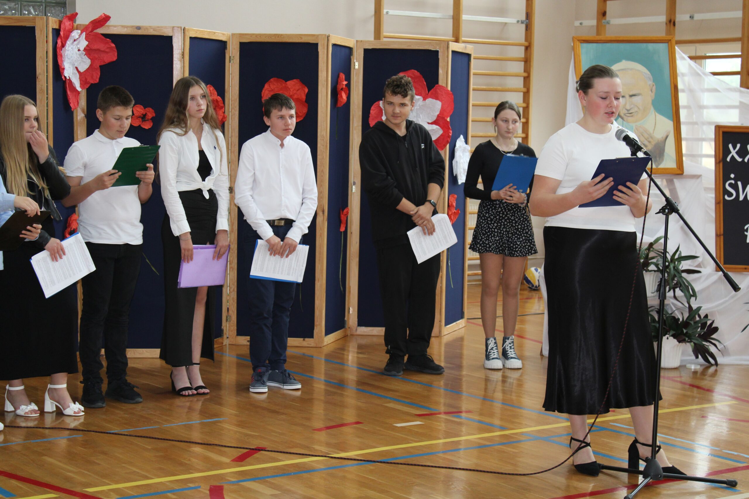 Uczniowie, nauczyciele i pracownicy szkoły wspólnie uczcili pamięć Papieża Polaka, uczestnicząc w programie artystycznym, który przypomniał najważniejsze przesłania św. Jana Pawła II. Uczniowie zaprezentowali montaż słowno-muzyczny poświęcony postaci i nauczaniu Papieża. Oprawą muzyczną zajęła się pani Bożena Wojtaszek, przygotowując uczniów do pięknych i poruszających wykonań.